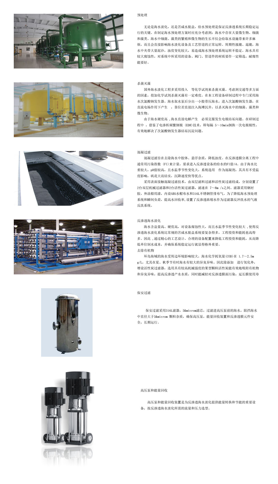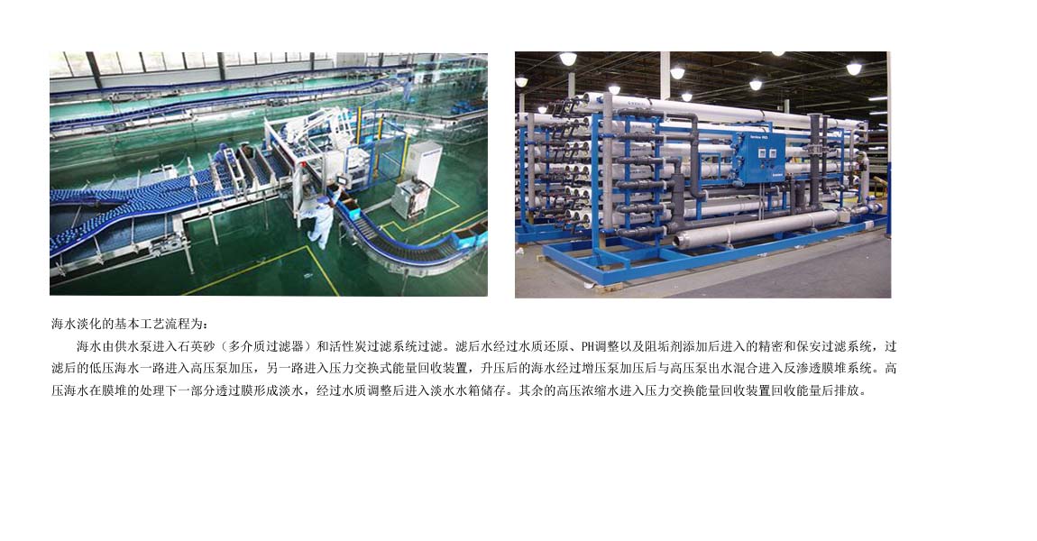 海水淡化即利用海水脫鹽生產(chǎn)淡水。是實(shí)現(xiàn)水資源利用的開源增量技術(shù),可以增加淡水總量,且不受時(shí)空和氣候影響,可以保障沿海居民飲用水和工業(yè)鍋爐補(bǔ)水等穩(wěn)定供水。從海水中取得淡水的過程謂海水淡化。 現(xiàn)在所用的海水淡化方法有海水凍結(jié)法、電滲析法、蒸餾法、反滲透法、以及碳酸銨離子交換法,目前應(yīng)用反滲透膜法及蒸餾法是市場(chǎng)中的主流。世界上有十多個(gè)國家的一百多個(gè)科研機(jī)構(gòu)在進(jìn)行著海水淡化的研究,有數(shù)百種不同結(jié)構(gòu)和不同容量的海水淡化設(shè)施在工作。一座現(xiàn)代化的大型海水淡化廠,每天可以生產(chǎn)幾千、幾萬甚至近百萬噸淡水。水的成本在不斷地降低,有些國家已經(jīng)降低到和自來水的價(jià)格差不多。某些地區(qū)的淡化水量達(dá)到了國家和城市的供水規(guī)模。
