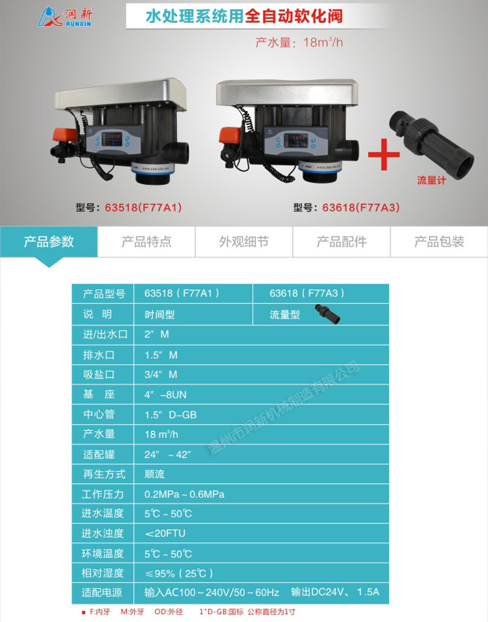 潤新閥的耐雜質(zhì)能力更強,反洗流量大,顯示方式有LED及LCD兩種,再生方式有順流再生、逆流再生供選擇。潤新閥的出廠產(chǎn)品100%進行0.1MPa、0.6MPa氣壓及水壓測試且通過美國NSF認證,具有嚴格的可靠性。